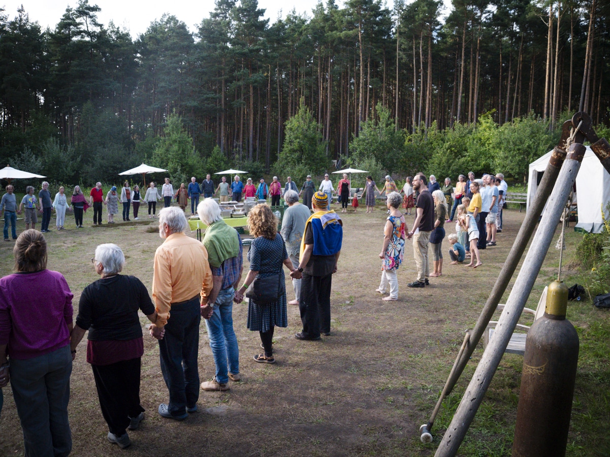 Das Caduceus Zentrum erklärte sich bereit, während der üblichen Sommerpause ein zweiwöchiges Programm mit dem Camp zu veranstalten, und wir hatten ein wunderbares improvisiertes und doch vertrautes Camp inmitten des norddeutschen Kiefernwaldes. Wir navigierten mit Pir Zia durch den Trikosmos, kultivierten mit Saki Lee unser inneres Heiligtum und erkundeten mit Atum O’Kane die Kernelemente eines sinnvollen Lebens. Die zwei Wochen waren reichhaltig, harmonisch und unbeschwert, während sie gleichzeitig Raum für einen intensiven Dialog über die Zukunft des Camps boten. Wir werden die Früchte und Samen dieser Gespräche in den kommenden Newslettern und hier auf dezidierten Seiten hier mit euch teilen: Überblick über den Übergangsprozess + Fragen Antworten.